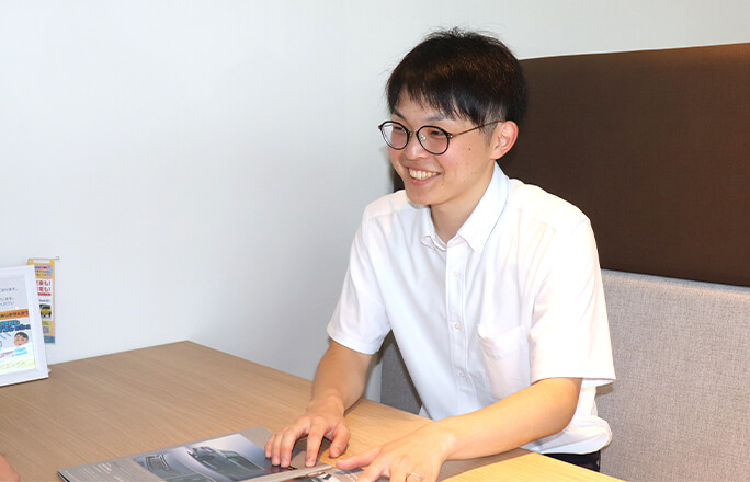 人と話すのが好きだったので、営業職を志望しました。入社後、車の知識も大切ですが、営業として一番重要なのは「お客様との信頼関係を築けるかどうか」だと教わりました。お客様にとって、ただ車を買いに来る場所ではなく、「あなたから車を買いたい」と思ってもらえるような営業を目指して、日々仕事に取り組んでいます。
